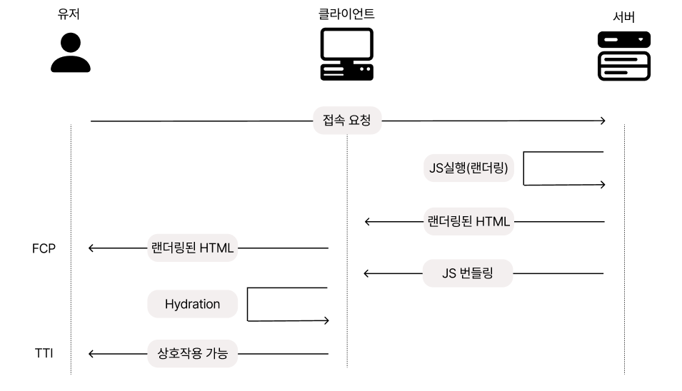 - 클라이언트는 서버에서 받은 HTML을 기반으로 하이드레이션을 수행한다.