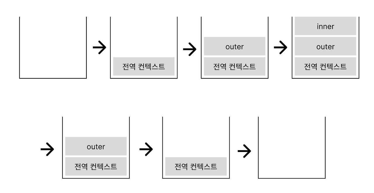 콜 스택에 담기는 과정을 그림으로 나타내면 다음과 같다.